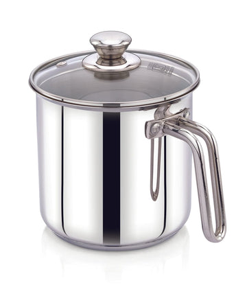 MIRROR FINISH AND HAMMERED FINISH MILK POT WITH GLASS LID